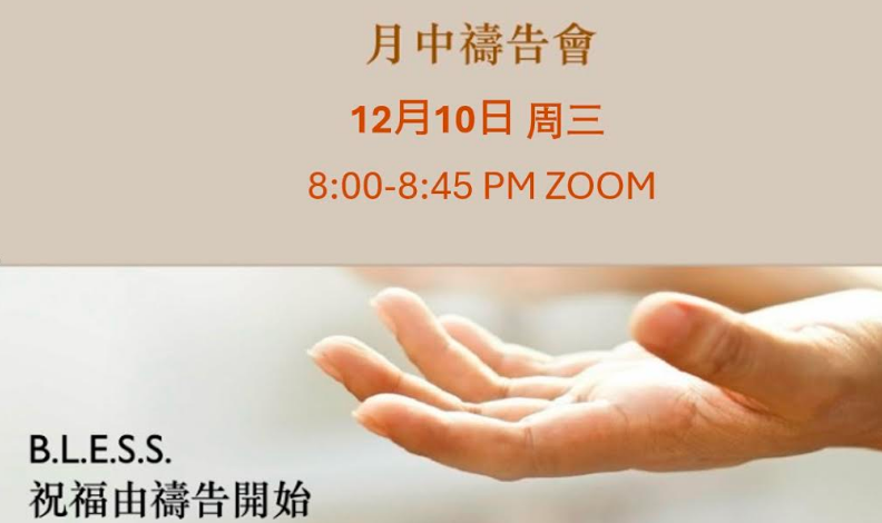 2. 为成长小组:主呀,感谢你一年的带领。求你赦免我们的骄傲、自私和懒惰;帮助我们好好的回顾及感恩。求你带领我们不再作属灵的婴孩,在基督里继续成熟成长。阿们。