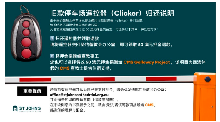 周日早晨教会场地的所有停车位(包括聚会大厅后面的车位),都保留给行动不便的人员使用。